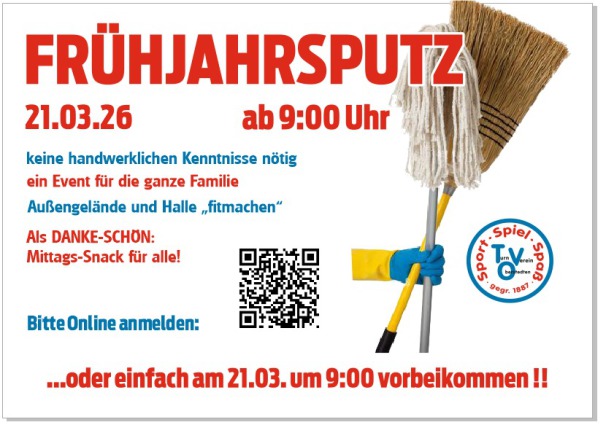 Hallo an alle! Am Samstag ist wieder unser jährliches Frühjahrsputzen - um 9:00 Uhr geht's los! Wir freuen uns über reges Erscheinen... hier anmelden oder spontan bitte vorbei schauen.